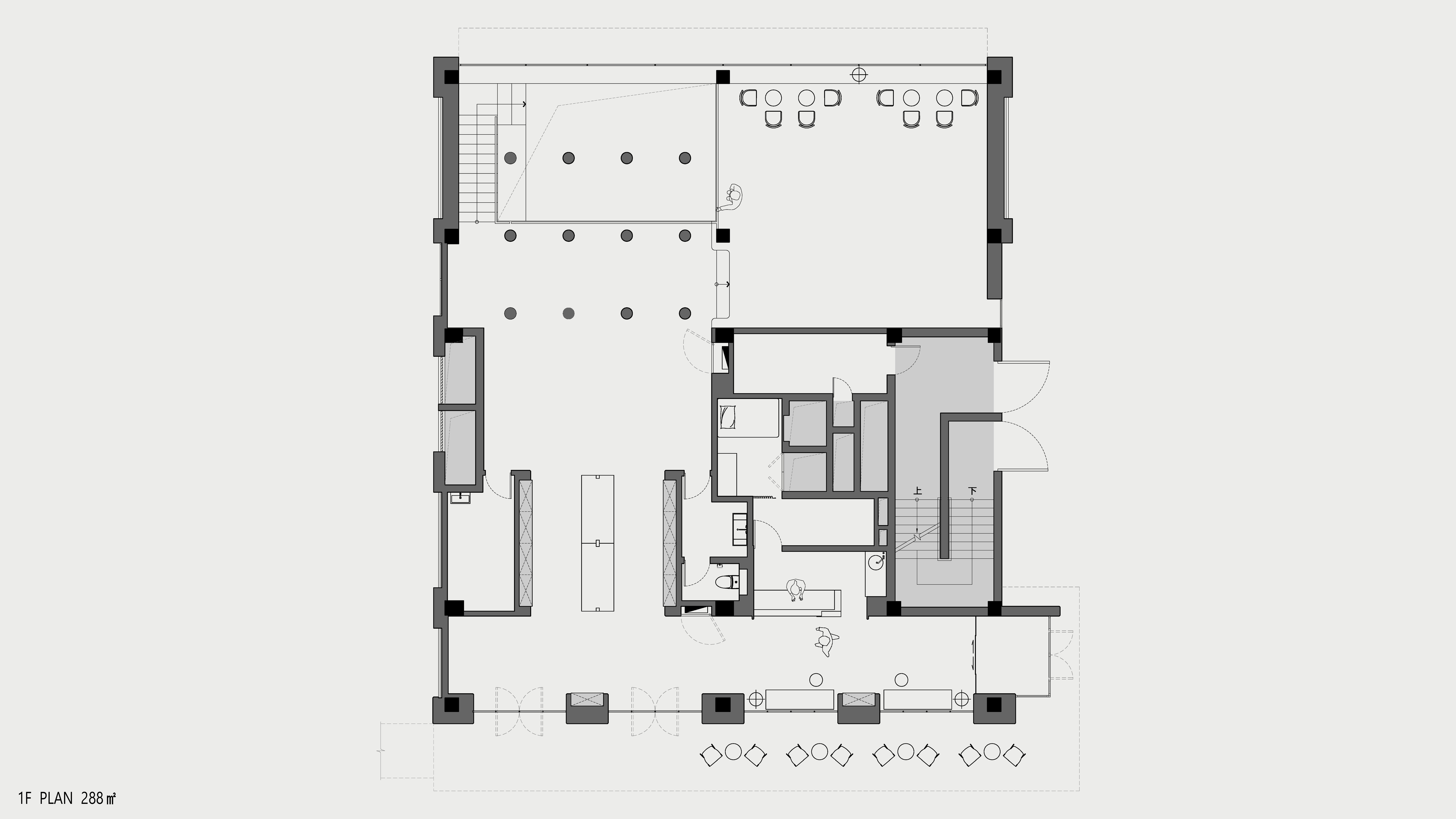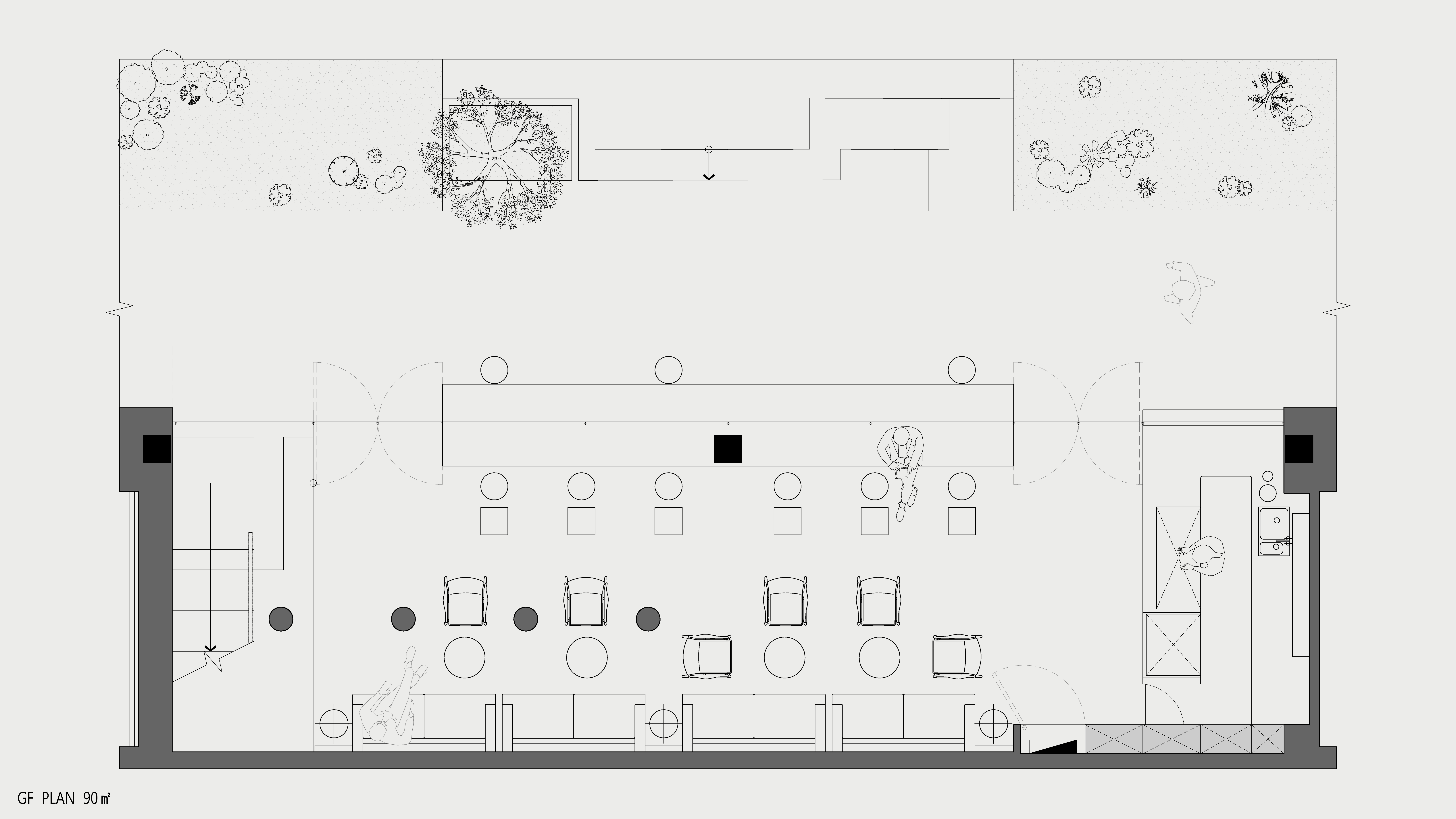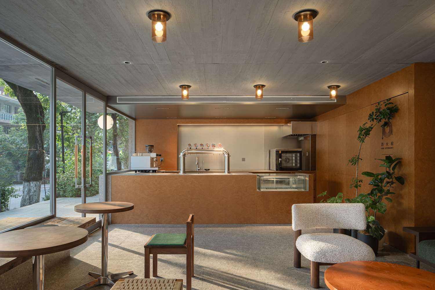 在设计中运用数根来自老建筑拆下的木柱形成水泥建筑中的小树林,附以其新的概念成长于此。