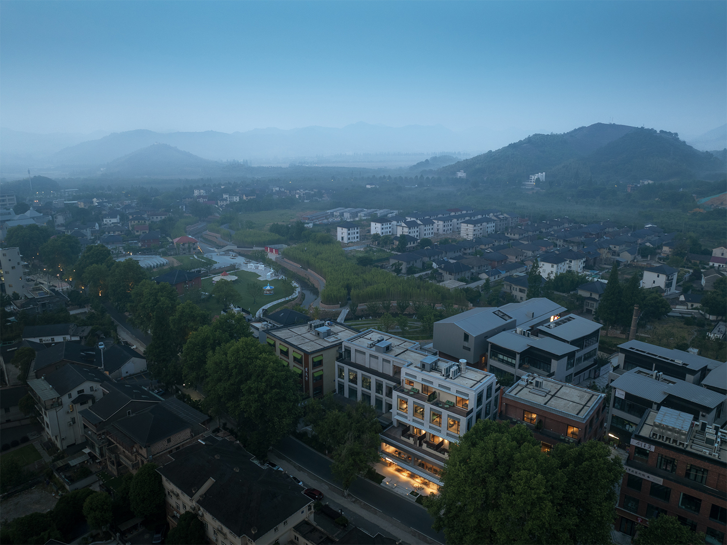 方山有树(莫干山庾村店)是大乐之野旗下艺术策展酒店新品牌,位于浙江省湖州市德清县莫干山国际旅游度假区的庾村水街商区。