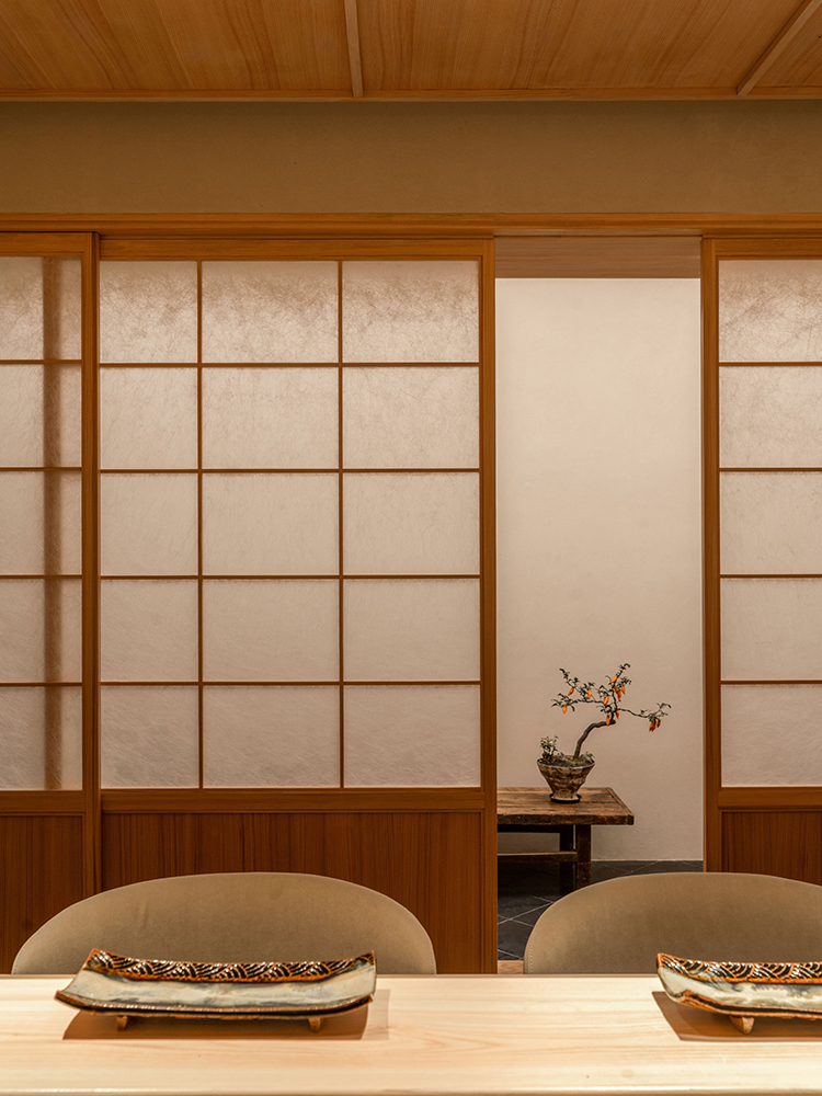 设计通过提取并重构传统日式元素与美学,将其转化为契合当代审美的空间语言,